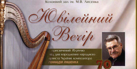 15 грудня великим симфонічним концертом завершав свій ювілейний рік Геннадій ЛЯШЕНКО, визнаний майстер, відомий композитор і педагог. Програма Національного симфонічного оркестру України (диригент - народний артист України Володимир Сіренко) була побудована з урахуванням ефекту різноманітної концертності, на яку такий багатий творчий доробок композитора. Прозвучали три інструментальні концерти - для арфи (солістка - Наталя Ізмайлова), для віолончелі (соліст - Іван Кучер) та Concerto-piccolo для скрипки (солістка - Богдана Півненко). А завершувався концерт монументальною прем"єрою - Симфонією №6 для хору та оркестру, в якій використано канонічну молитву "Отче наш", поезії Тараса Шевченка та Дмитра Павличка. Як відомо, саме за хорову музику Г.ЛЯШЕНКО був удостоєний в цьому році Національної премії імені Тараса Шевченка. Новий твір, сповнений високої духовної сили, виразно донесли до слахачів Київський хор "Кредо" та симфонічний оркестр під орудою Богдана Пліша.