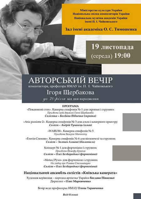 Для такої нагоди ОЛЕГ БЕЗБОРОДЬКО обрав свої твори різних років для камерного оркестру.